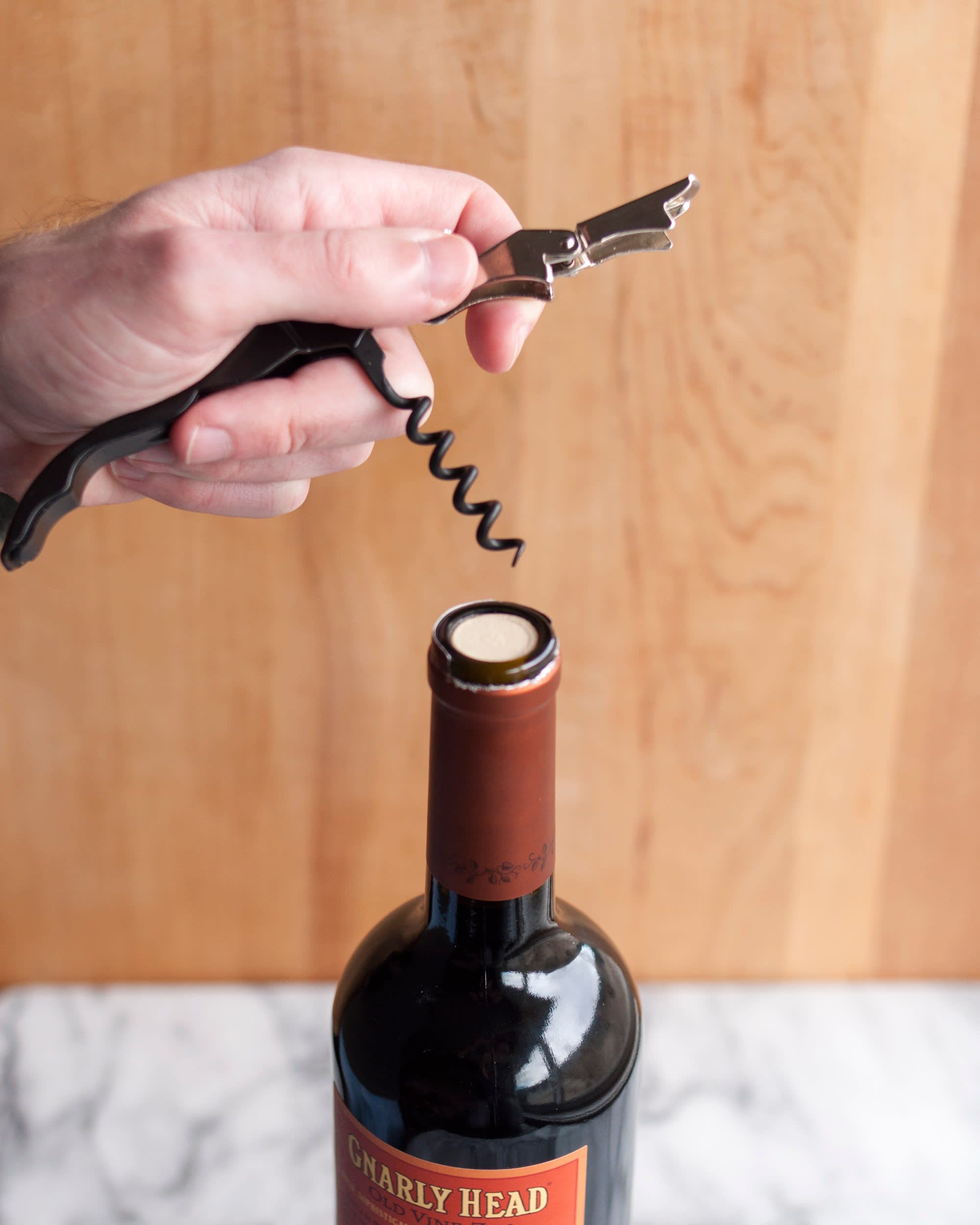 If there's no wall, hold the bottle between your legs and bang the bottom with a shoe; When considering the ways to get a wine bottle opened without a corkscrew, you should always take into account what household items are available soon the heated air will expand enough to simply pop the cork straight out of the bottle… hurray physics! To open the bottle, you simple take the handle of the wooden spoon, or something similar, and push the cork down into the bottle of wine. While gripping the bottle with one hand and your object with the other hand, push. To open your wine with a pump, you'll first need to insert the needle between the cork and the rim of the wine bottle.